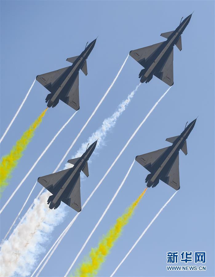 11月6日,中國空軍八一飛行表演隊在航展現(xiàn)場進行飛行表演。當(dāng)日,第十二屆中國國際航空航天博覽會在珠海開幕。 新華社記者鄧華攝