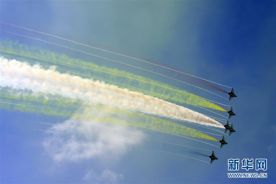 11月6日,中國空軍八一飛行表演隊在航展現(xiàn)場進行飛行表演。當日,第十二屆中國國際航空航天博覽會在珠海開幕。新華社記者劉芳攝