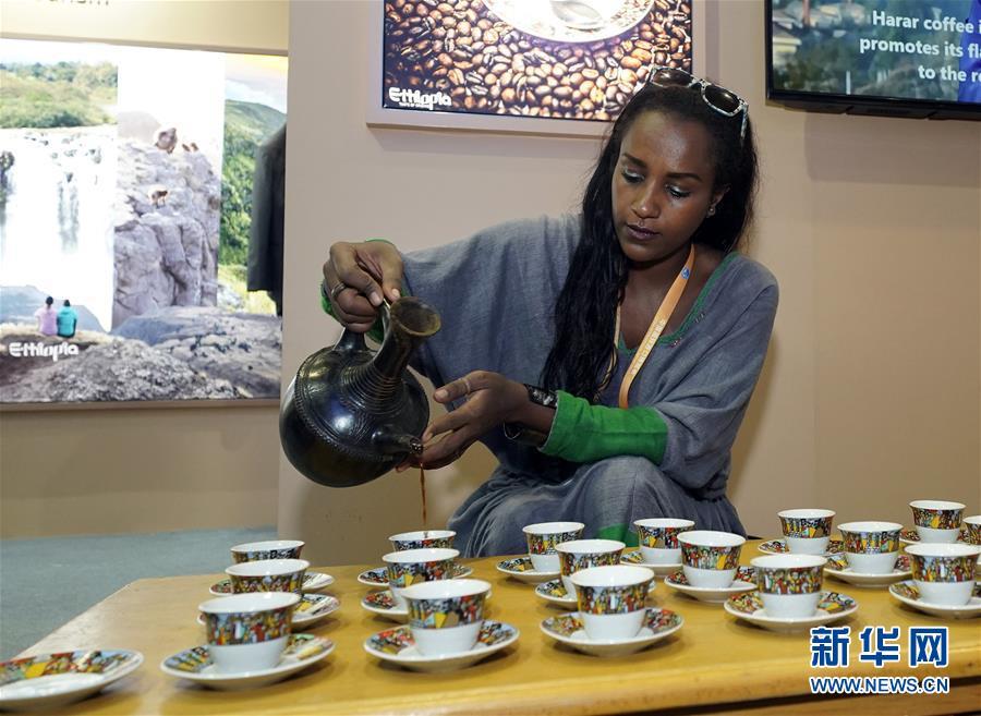 11月6日,在首屆中國國際進(jìn)口博覽會(huì)上,埃塞俄比亞參展人員為參觀者倒咖啡。新華社記者 沈伯韓 攝
