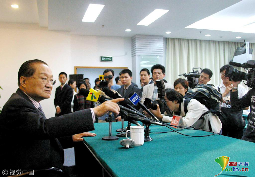 2003您7月24日,杭州,在回答記者提問時(shí),金庸先生回答說已經(jīng)收了3個(gè)學(xué)生。圖片作者:羅先明