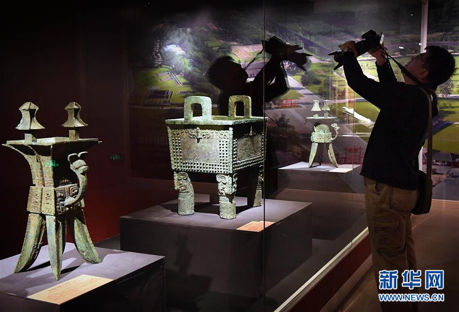10月12日,參觀者在安陽(yáng)博物館參觀拍攝。目前,“鳳歸大邑商——殷墟婦好文物安陽(yáng)故里展”正在安陽(yáng)博物館展出,共展出文物474件。1976年被考古學(xué)家發(fā)現(xiàn)的婦好墓,是世界文化遺產(chǎn)、中國(guó)商代后期都城遺址——殷墟唯一保存完整的商代王室墓葬。新華社記者李安攝