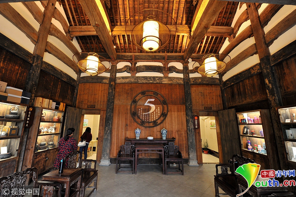 繞過“龍司”外的游廊,迎面是寬敞的古建筑廳堂,擺放中式桌椅,可供游人休息,周瑜、大小喬等東吳人物成為廁所男女標志,廁所內(nèi)花木環(huán)繞,清新淡雅,巧妙的通風設計讓人聞不到一絲異味。最有特色的是,詩詞書畫、特色工藝品等都進入了這個特殊空間,讓游客在解決生理需求外還可以在這里閱讀休息,體驗塘里的鄉(xiāng)土文化。