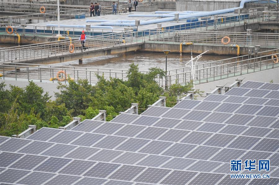 這是11月20日拍攝的福建省石獅市中心區(qū)城市污水處理廠處理池上的分布式光伏發(fā)電項(xiàng)目。 新華社記者 宋為偉 攝