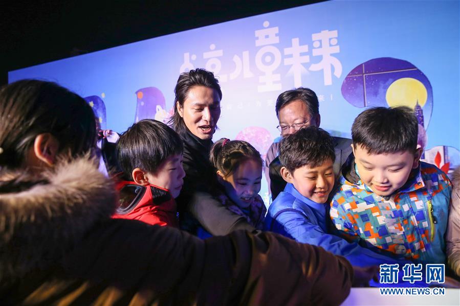 11月20日,在北京舉行的世界兒童日主題活動(dòng)上,聯(lián)合國兒童基金會(huì)大使陳坤與孩子們共同點(diǎn)亮國家游泳中心。 新華社記者張玉薇攝