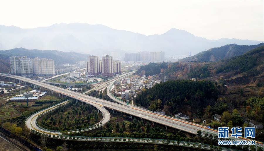 11月20日拍攝的水陽高速公路與福銀高速公路相接的樞紐互通式立交(無人機拍攝)。 近日,記者從陜西省交通建設(shè)集團公司了解到,陜西柞水至山陽高速公路已全線貫通即將通車。據(jù)介紹,(柞)水(山)陽高速公路全長78.8公里,開通后將實現(xiàn)包茂高速、福銀高速在陜南商洛地區(qū)的連接,開辟出秦嶺南麓的一條橫向高速大通道,對完善陜西高速公路路網(wǎng)結(jié)構(gòu)、促進陜南區(qū)域經(jīng)濟發(fā)展、加快山區(qū)群眾脫貧致富具有重要意義。 新華社記者劉瀟攝
