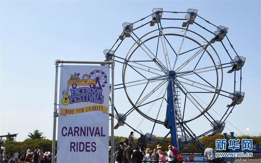 8月11日,在美國舊金山灣區(qū),人們在“臉書節(jié)”游戲區(qū)乘坐摩天輪。當(dāng)日,舊金山灣區(qū)臉書園區(qū)舉行“臉書節(jié)”,人們在活動中欣賞文藝表演,品嘗美食,乘坐游樂設(shè)施等,活動收入將捐給慈善團(tuán)體。新華社記者吳曉凌攝
