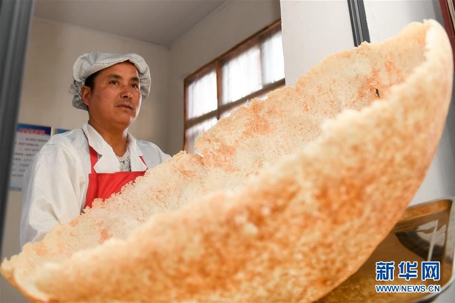 11月22日,汪明祥在鍋巴廠里加工鍋巴。新華社記者張端攝