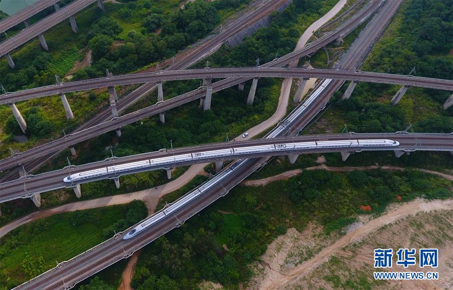 動(dòng)車行駛在廣西南寧市屯里特大橋上(7月1日無人機(jī)拍攝)。 廣西壯族自治區(qū)成立60年來,鐵路建設(shè)發(fā)生翻天覆地的變化。來自中國鐵路南寧局集團(tuán)有限公司的數(shù)據(jù)顯示,1958年廣西鐵路總里程為1346.3公里,如今廣西鐵路總里程達(dá)5191公里。廣西與周邊相鄰省份間實(shí)現(xiàn)動(dòng)車“公交化”開行。此外,北部灣港—重慶班列、東盟海產(chǎn)品冷鏈班列、“百色一號(hào)”果蔬專列等的開通和運(yùn)營,強(qiáng)化了鐵路供給的針對(duì)性和有效性。鐵路成為助推廣西經(jīng)濟(jì)社會(huì)快速發(fā)展的“大動(dòng)脈”。 新華社記者黃孝邦攝