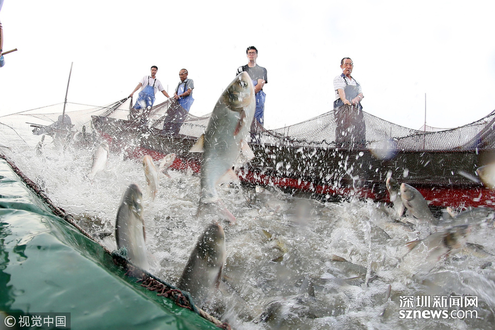 深圳新聞網(wǎng)訊 2018年6月26日,江蘇省常州市嘉澤鎮(zhèn)捕撈村的漁民組織夏季捕撈,一網(wǎng)魚達五萬余斤,以鰱魚為主,供應市場需求。夏捕的魚價較平時有所上漲,漁民粗略估計可增收上萬余元。