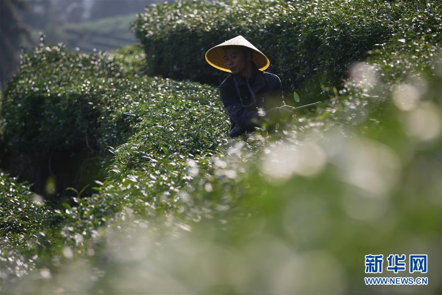 11月22日,在廣西柳州三江侗族自治縣八江鎮(zhèn)布央村,村民吳正光在修剪茶樹。新華社記者任正來攝