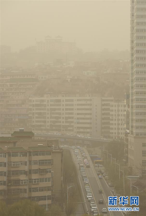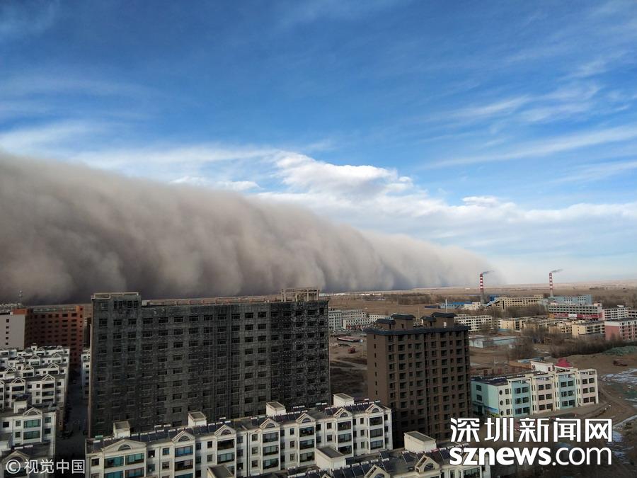 2018年11月25日,甘肅張掖,當?shù)赝辉馍硥m暴襲擊。