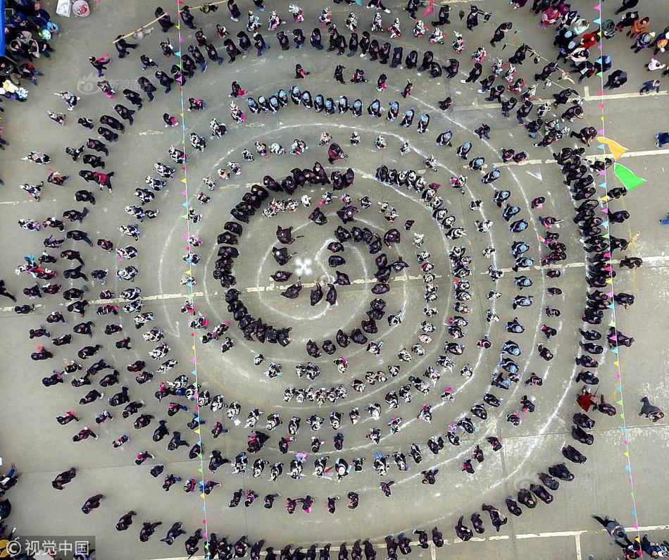 11月20日報道,2018年11月19日,侗族同胞在參加貴州省從江縣慶云鎮(zhèn)“凍魚節(jié)”踩歌堂。(無人機(jī)拍攝)2018年11月19日,貴州省從江縣慶云鎮(zhèn)境內(nèi)的石姓侗族同胞迎來傳統(tǒng)一年一度的“凍魚節(jié)”,當(dāng)?shù)囟弊逋碇?jié)日盛裝舉行祭薩、踩歌堂、賽侗歌,慶祝豐收,祈福來年風(fēng)調(diào)雨順,五谷豐登。