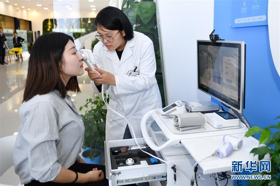 11月6日,參觀者在烏鎮(zhèn)互聯(lián)網(wǎng)醫(yī)院體驗(yàn)“智能醫(yī)務(wù)室”的體檢功能。據(jù)了解,“智能醫(yī)務(wù)室”由智能移動(dòng)醫(yī)療一體機(jī)、智能藥柜以及一系列檢查設(shè)備組成,根據(jù)健康檔案和檢查結(jié)果,視頻連接家庭醫(yī)生就能解決常見(jiàn)的醫(yī)療健康問(wèn)題。 新華社記者黃宗治攝
