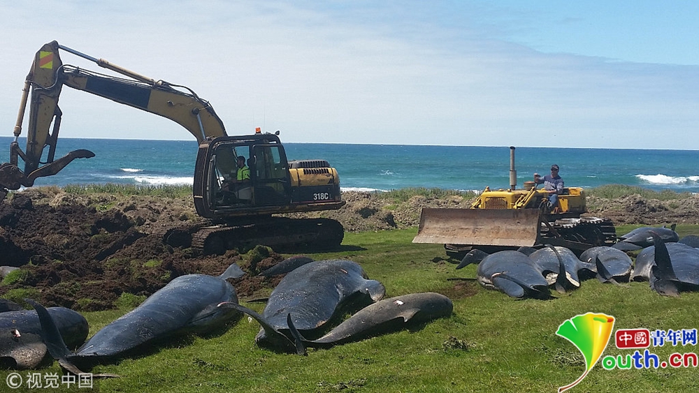 多頭巨鯨新西蘭海岸擱淺死亡 沿海海水染成紅色