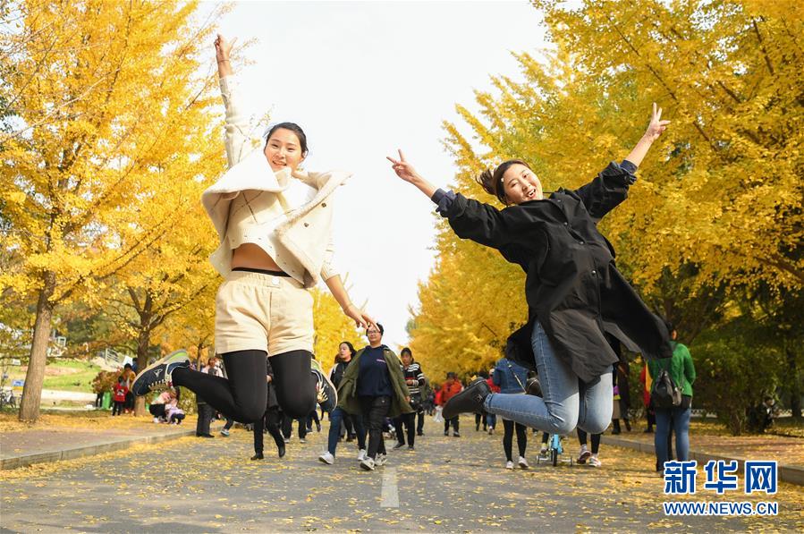 近日,沈陽農(nóng)業(yè)大學內(nèi)的銀杏樹進入最佳觀賞期,長達一千余米的金色“銀杏路”吸引了許多市民前去游覽,拍照。 新華社記者龍雷攝