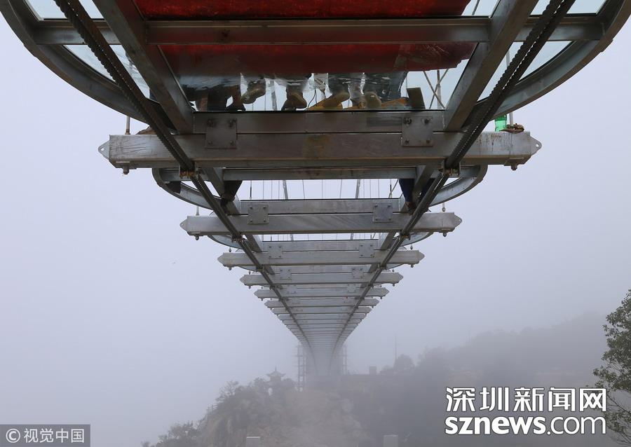 恐高勿進(jìn)!玻璃橋這樣鋪成!