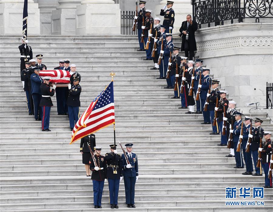 12月5日,在美國首都華盛頓,美國前總統(tǒng)喬治·赫伯特·沃克·布什的靈柩離開國會大廈。