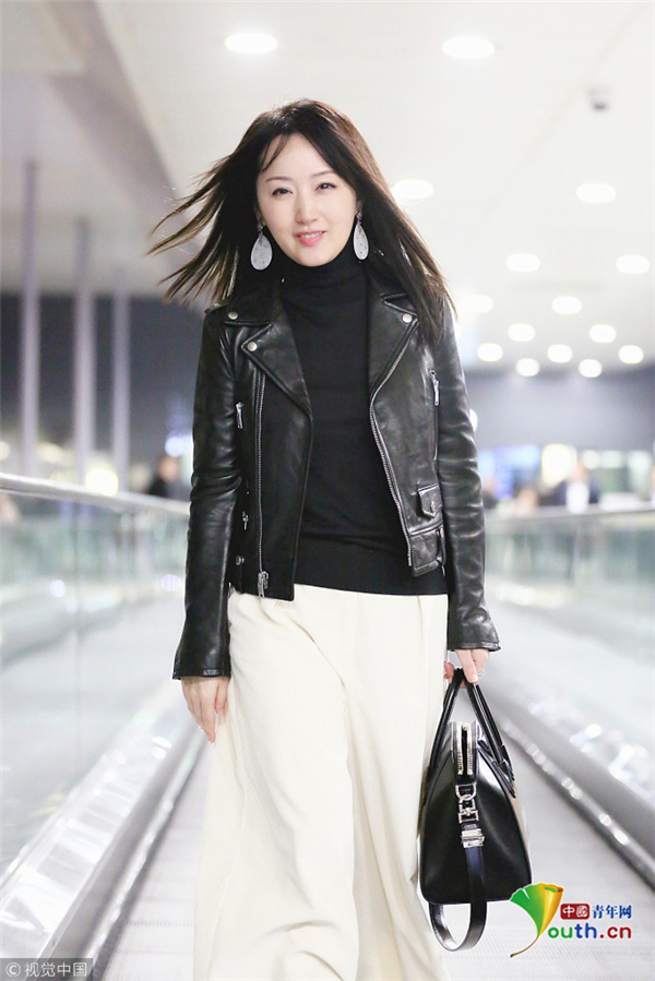 12月9日,上海,楊鈺瑩現(xiàn)身上海虹橋機(jī)場(chǎng),她身著黑色皮衣的她搭配白色直筒褲,手提大牌包優(yōu)雅知性,長(zhǎng)發(fā)披肩溫柔甜美似少女,見(jiàn)跟拍主動(dòng)揮手示好,保養(yǎng)得當(dāng)?shù)乃笮阊┌准∧w,不顯年紀(jì)!