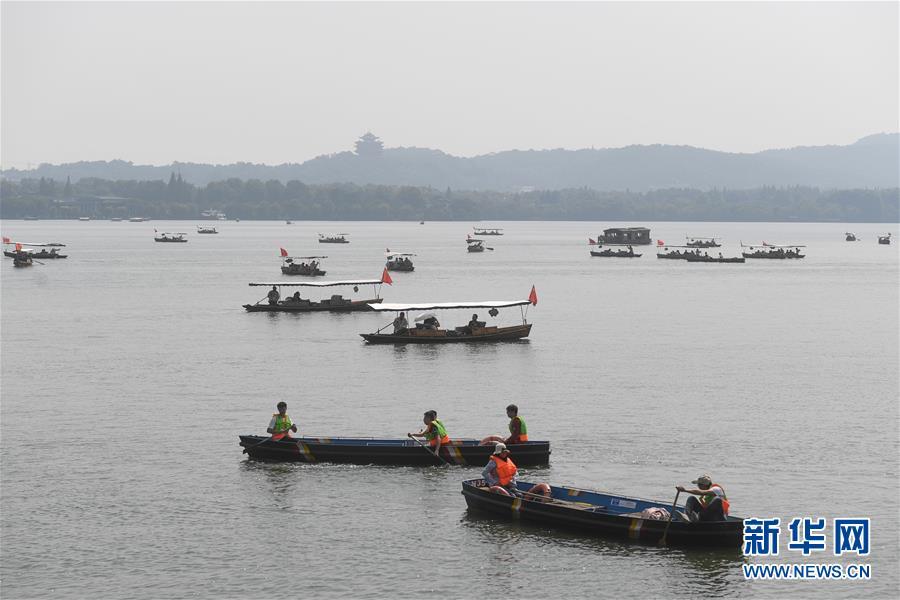 8月14日,游客乘船在西湖游玩(無人機(jī)拍攝)。 新華社記者 翁忻旸 攝