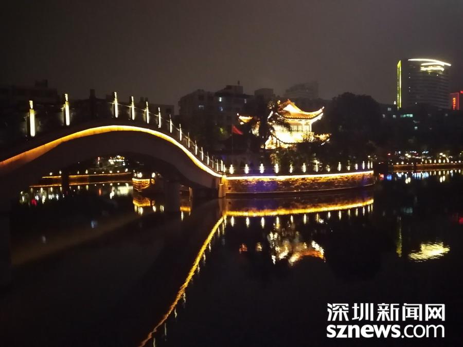 百里塘河穿市而過 ,燈光水光,相映成趣。 吳超攝