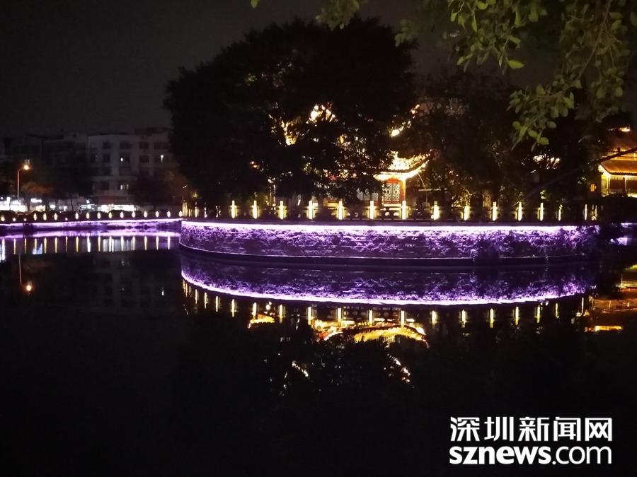 百里塘河穿市而過 ,燈光水光,相映成趣。 吳超攝