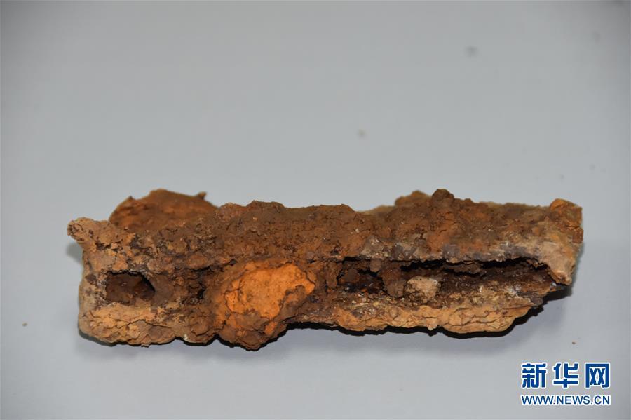 吳山祭祀遺址內出土的鐵鍤農具(12月7日攝)。 新華社記者都紅剛攝