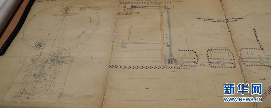 這是11月2日在英國(guó)紐卡斯?fàn)柕奶┒鳌枡n案館拍攝的致遠(yuǎn)艦設(shè)計(jì)圖紙。 新華社記者日前在紐卡斯?fàn)柼┒鳌枡n案館查找北洋海軍史料時(shí)發(fā)現(xiàn)一套七張、檔案名為“中國(guó)巡洋艦舵機(jī)設(shè)計(jì)圖”的原始圖紙。塵封百年,甲午海戰(zhàn)中抗擊日艦后沉沒(méi)的清北洋海軍致遠(yuǎn)艦部分原廠設(shè)計(jì)圖紙?jiān)谄浣ㄔ斓亍?guó)紐卡斯?fàn)柺械囊患覚n案館首次被發(fā)現(xiàn),為打撈那段悲壯的歷史提供了重要參考。 新華社記者 韓巖 攝