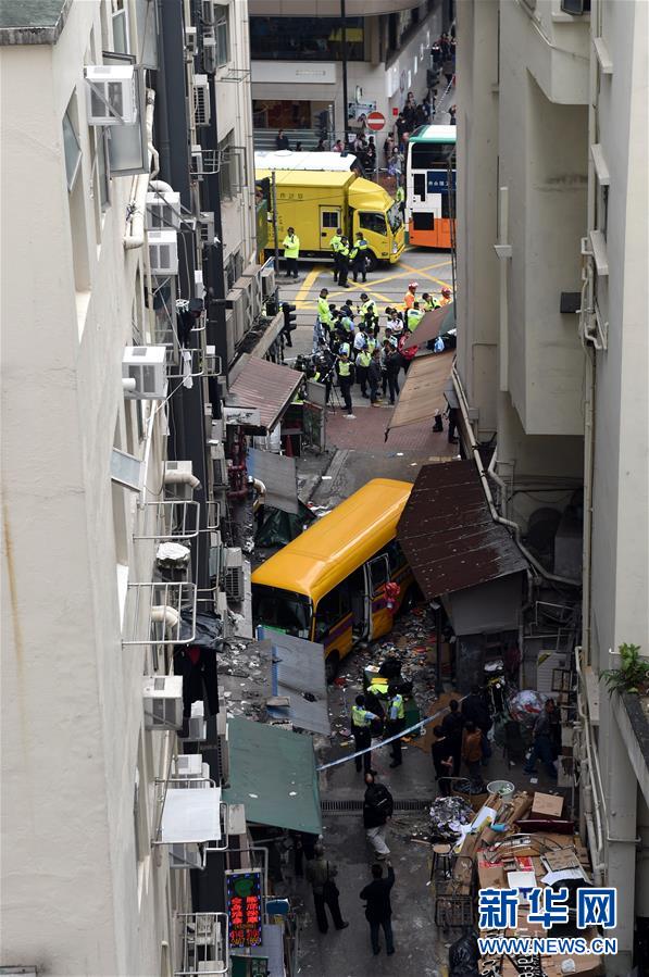 這是12月10日在香港北角拍攝的事故現(xiàn)場。 12月10日下午2時左右,香港北角發(fā)生車禍,一輛校巴沖上行人路。 新華社記者 盧炳輝 攝