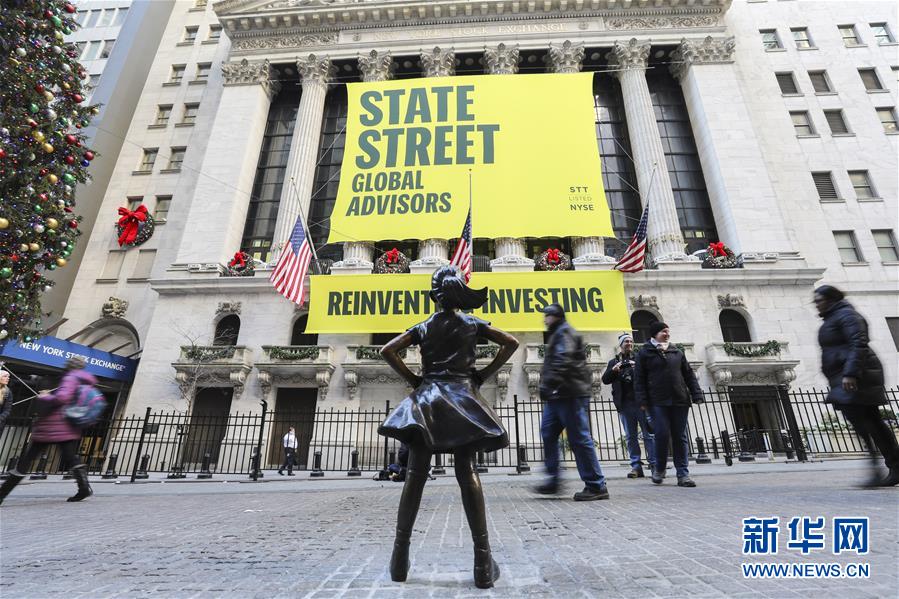 這是12月10日在美國(guó)紐約證券交易所前拍攝的“無(wú)畏女孩”銅像。