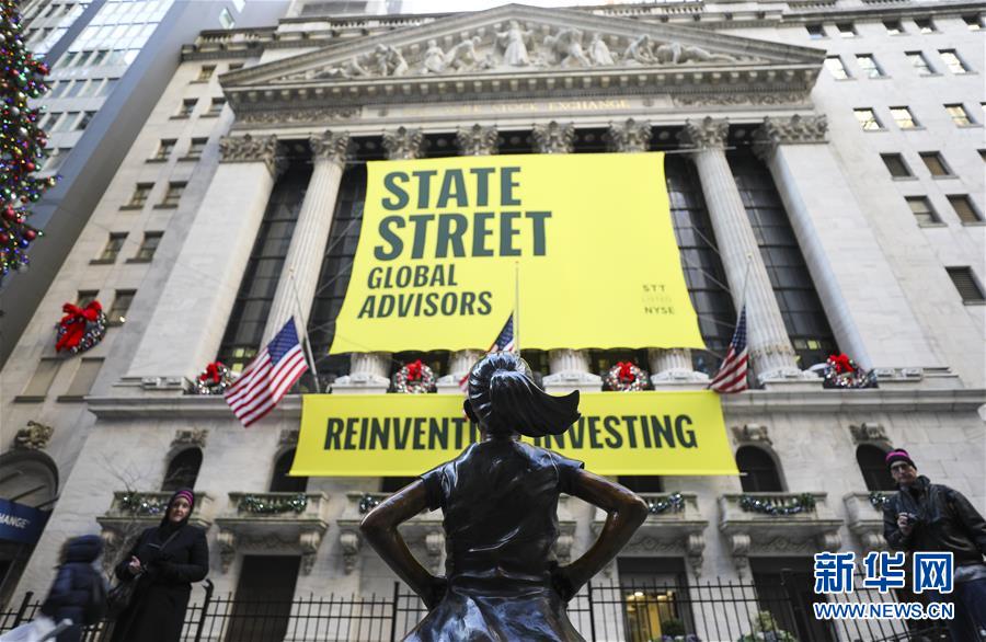 12月10日,在美國紐約,人們從紐約證券交易所前的“無畏女孩”銅像旁走過。 新華社記者 王迎 攝