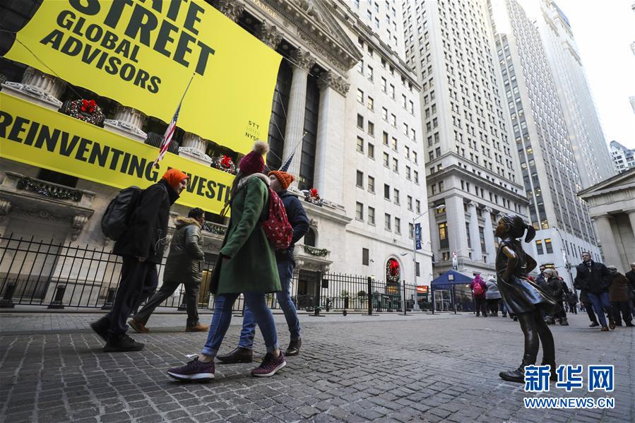 這是12月10日在美國(guó)紐約證券交易所前拍攝的“無畏女孩”銅像。 新華社記者 王迎 攝
