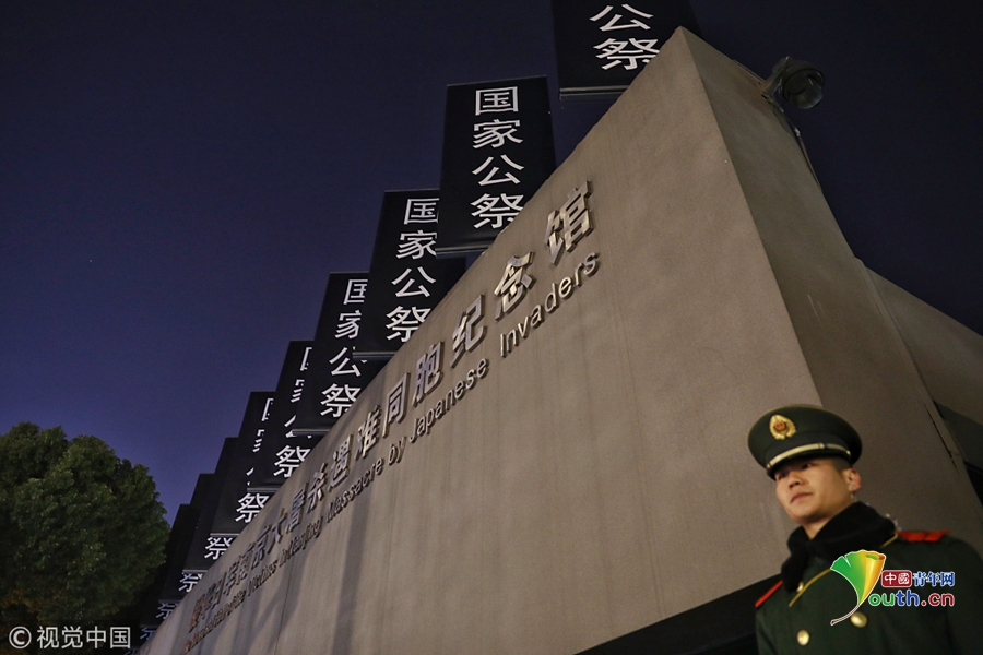 2018年12月12日晚,江蘇南京,侵華日軍南京大屠殺遇難同胞紀(jì)念館沿線道路莊嚴(yán)肅穆、安保和工作人員做好了準(zhǔn)備,迎接第五個(gè)南京大屠殺死難者國(guó)家公祭日。2018年是南京大屠殺慘案發(fā)生81周年,第五個(gè)南京大屠殺死難者國(guó)家公祭儀式將于12月13日舉行。圖片作者:尼克