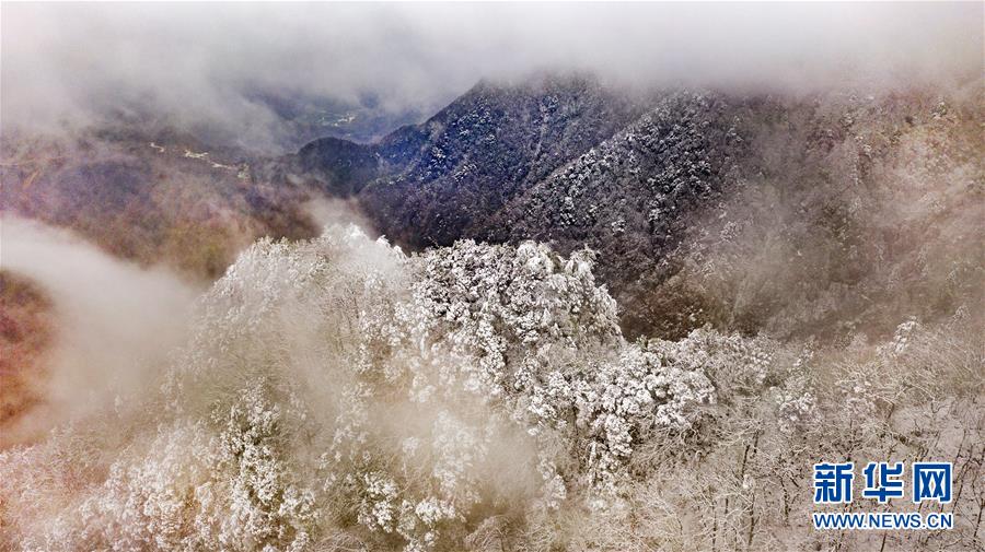 雪后初霽的鬼谷嶺國家森林公園(11月8日無人機拍攝)。 新華社記者陶明攝