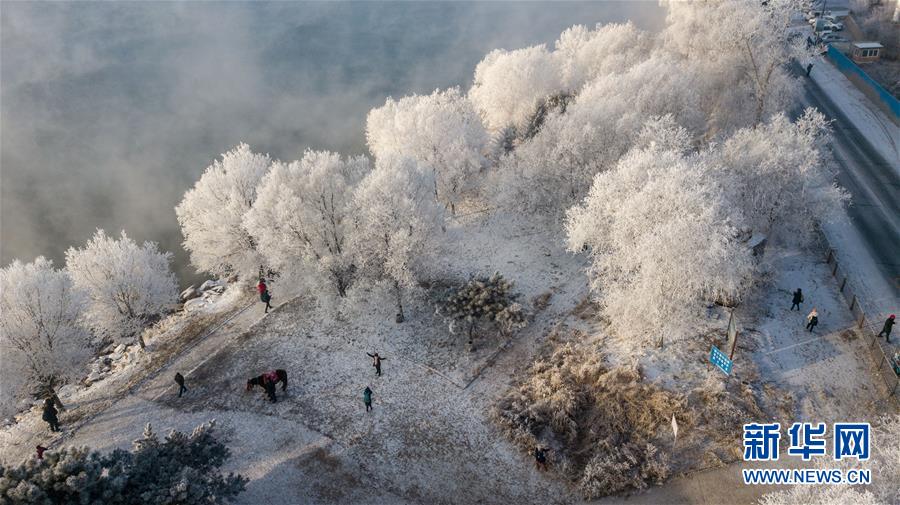 吉林松花江畔現(xiàn)大面積霧凇景觀 宛若 ...
