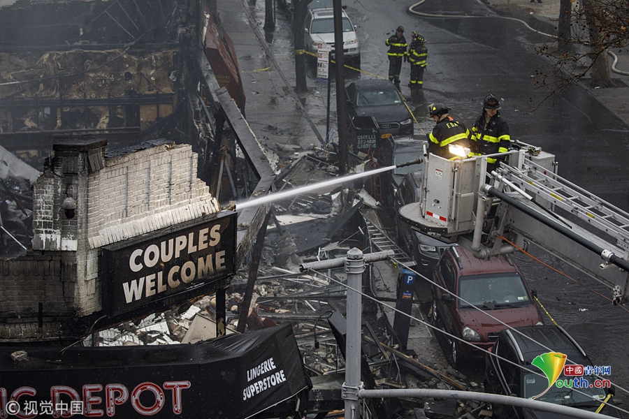 美國紐約發(fā)生大火吞噬六家商鋪 消防員撲滅火災(zāi)余燼
