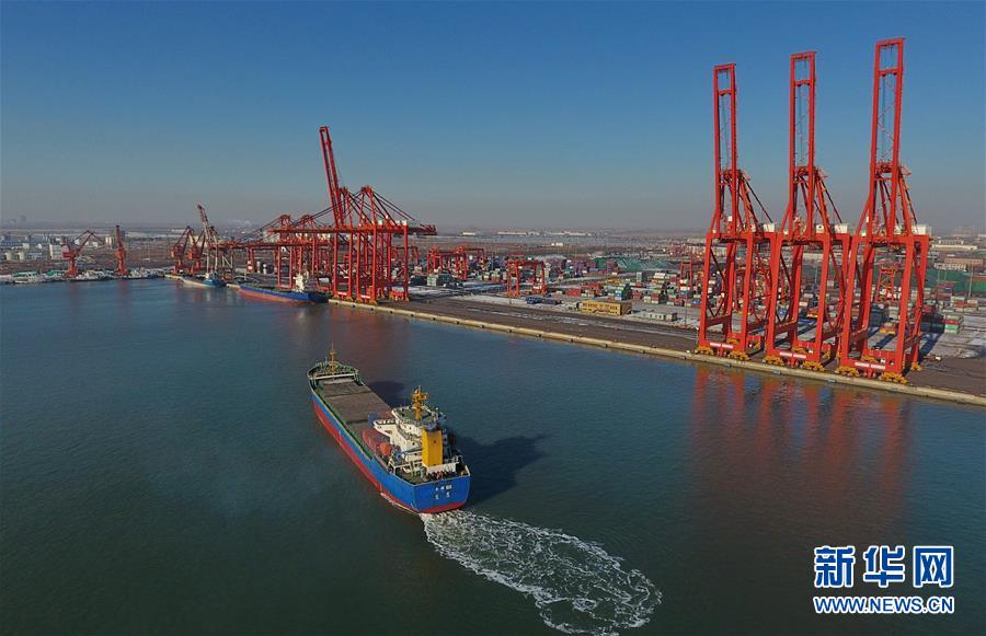 12月13日,一艘輪船在向唐山港京唐港區(qū)集裝箱碼頭靠泊(無(wú)人機(jī)拍攝)。 記者從河北省交通運(yùn)輸廳獲悉,2018年1至11月,河北省港口貨物吞吐量完成10.5億噸,為年度計(jì)劃的104%,同比增長(zhǎng)5.1%,位居全國(guó)沿海省份第四位。 新華社記者楊世堯攝