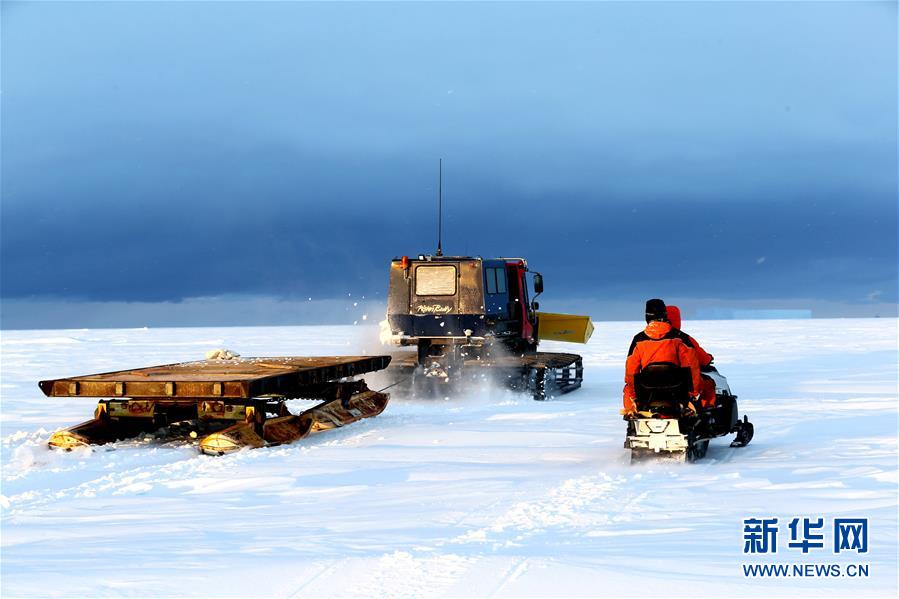 修路小組成員用雪地車裝備的鏟斗推平積雪(12月1日攝)。 搭載中國(guó)第35次南極科考隊(duì)的“雪龍”號(hào)極地考察船日前到達(dá)距離中山站44公里處的陸緣冰區(qū),準(zhǔn)備迎來本次南極科考首場(chǎng)攻堅(jiān)戰(zhàn)——物資卸運(yùn)。一支探冰小組隨即展開海冰探路,以期盡快打通從“雪龍”號(hào)到中山站的冰上運(yùn)輸線,盡早啟動(dòng)冰上運(yùn)貨。 新華社記者 劉詩平 攝