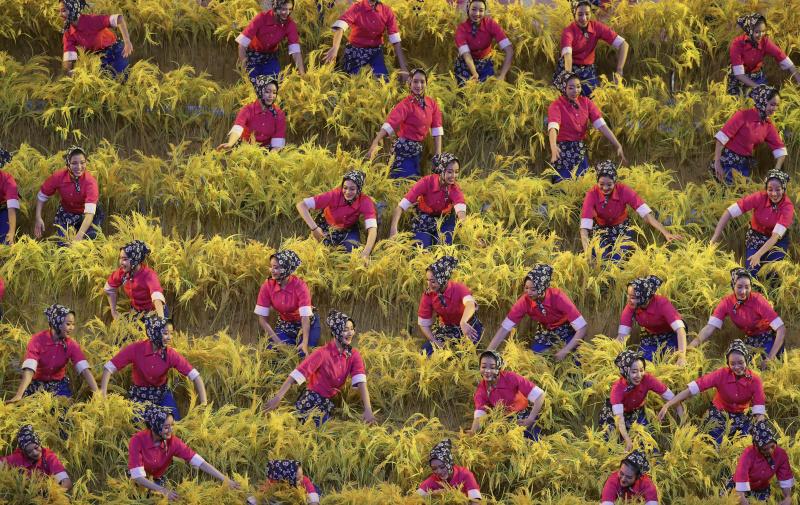 12月14日,慶祝改革開(kāi)放40周年文藝晚會(huì)《我們的四十年》在北京人民大會(huì)堂舉行。這是節(jié)目《在希望的田野上》。新華社記者 丁海濤 攝