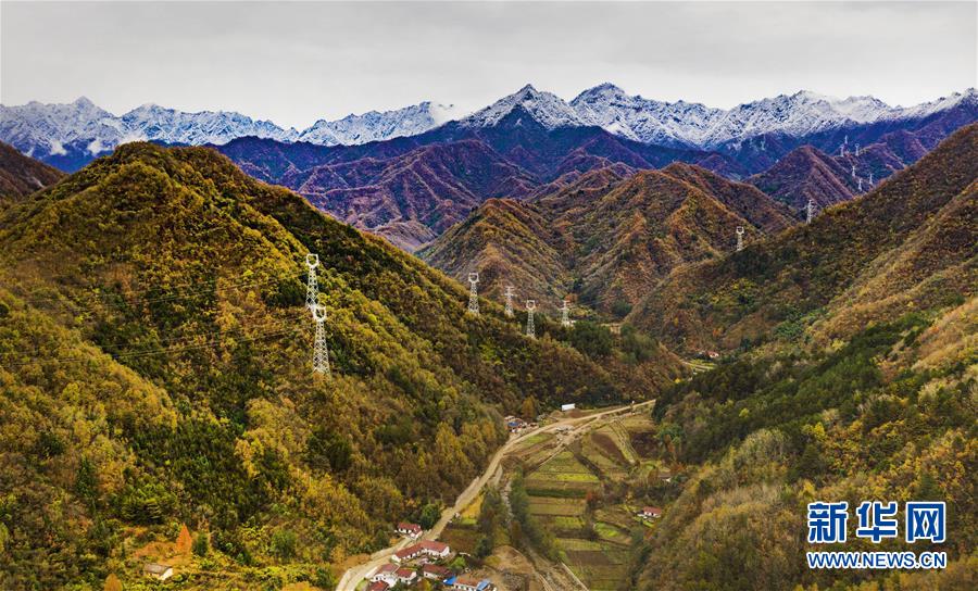 11月5日無人機(jī)拍攝的陜西省漢中市佛坪縣城旁的秦嶺景色。 新華社記者陶明攝