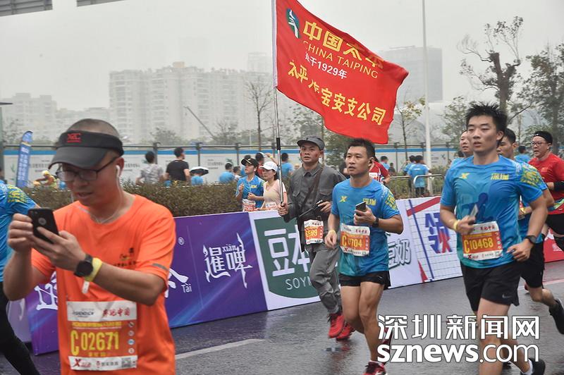 2018年12月16日,深圳國際馬拉松位于后海的折返點,距離終點不遠處,一位穿著八路軍服裝的選手正在沖刺。