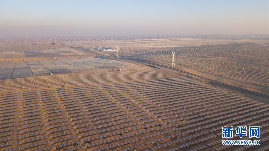 位于庫布其沙漠腹地的達(dá)拉特光伏發(fā)電應(yīng)用領(lǐng)跑基地一期500兆瓦項目(12月13日無人機(jī)拍攝)。 新華社記者 彭源攝