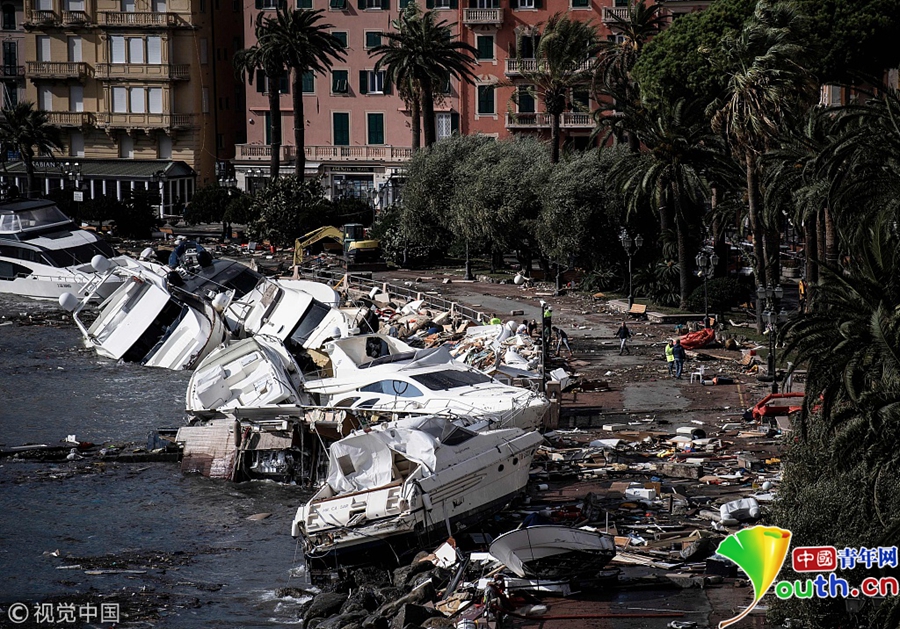 暴風雨襲擊當地港口,并摧毀了大壩的一部分。