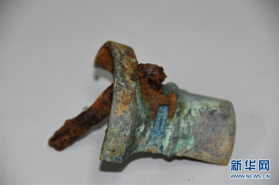 吳山祭祀坑內(nèi)出土的祭祀用的青銅車軎(12月7日攝)。 新華社記者都紅剛攝