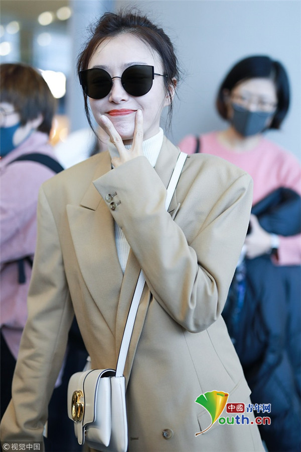 2018年12月11日,上海,秦嵐現(xiàn)身機(jī)場。她穿淺西裝配高領(lǐng)毛衣溫暖又時尚,梳丸子頭清新減齡,機(jī)場獲粉絲送告白信,嬌羞嘟嘴賣萌少女范十足。
