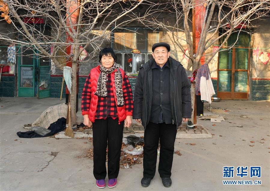 12月20日,青城鎮(zhèn)菜園村村民韓貽崗(右)和愛(ài)人在舊居院內(nèi)拍照紀(jì)念。 新華社記者 朱崢攝