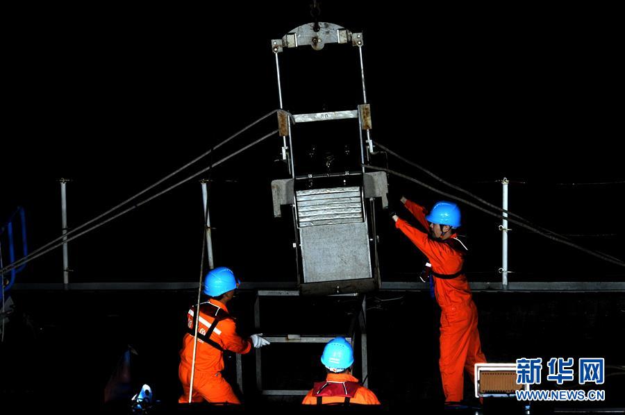 科考團隊成員在船上布放箱式采樣器(12月19日攝)。