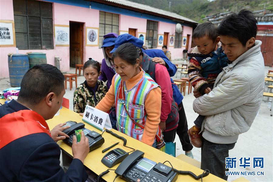 獨龍族群眾在辦理金融業(yè)務(wù)(2015年3月25日攝)。 新華社記者 胡超 攝