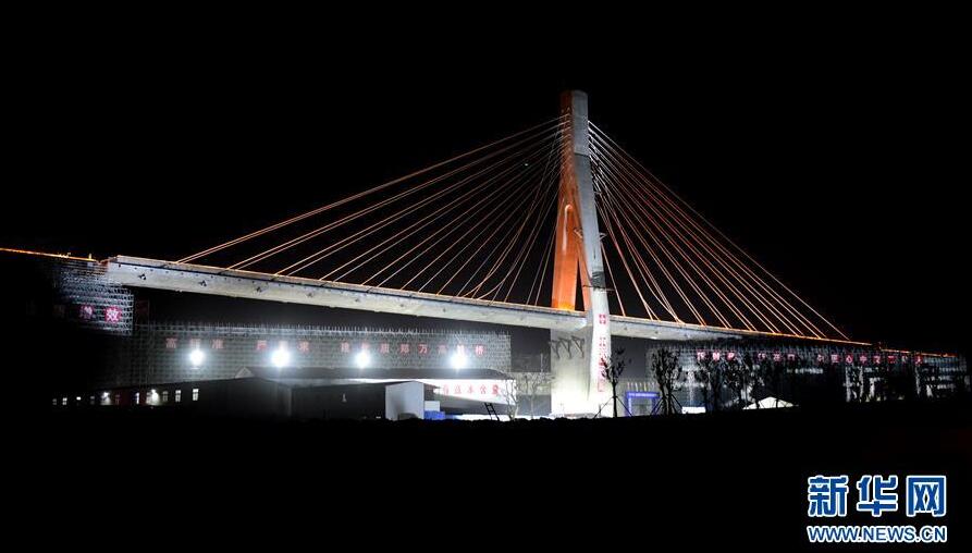 當(dāng)日凌晨,自帶弧度和大陡坡、形似一輪新月和登云天梯的1.65萬噸斜拉橋在河南鄭州近郊的夜幕中轉(zhuǎn)體成功,標(biāo)志著在建的鄭萬鐵路順利跨越徐蘭高鐵,同時(shí)也填補(bǔ)了國內(nèi)小曲線、大縱坡、大偏心轉(zhuǎn)體斜拉橋施工的空白。