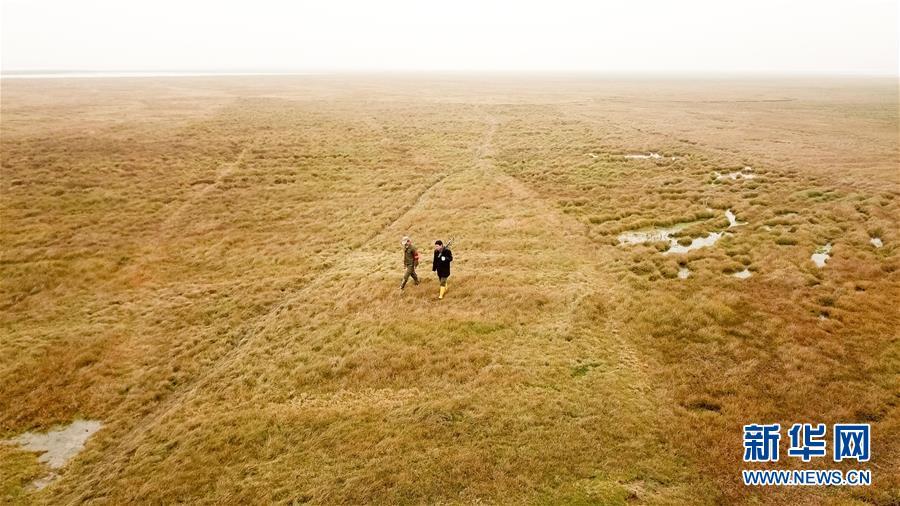 12月22日,王三益(右)和生態(tài)保護(hù)協(xié)會成員江軍在菜子湖濕地進(jìn)行越冬候鳥巡護(hù)(無人機(jī)拍攝)。每年10月開始,候鳥遷徙至菜子湖,次年3月飛回北方,期間王三益會和協(xié)會成員開展越冬候鳥巡護(hù)以及清理濕地灘涂垃圾。