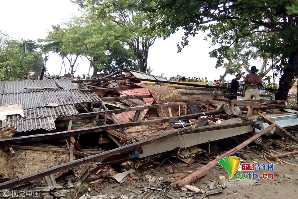 印尼海嘯遇難人數(shù)已升至62人 現(xiàn)場大量房屋倒塌